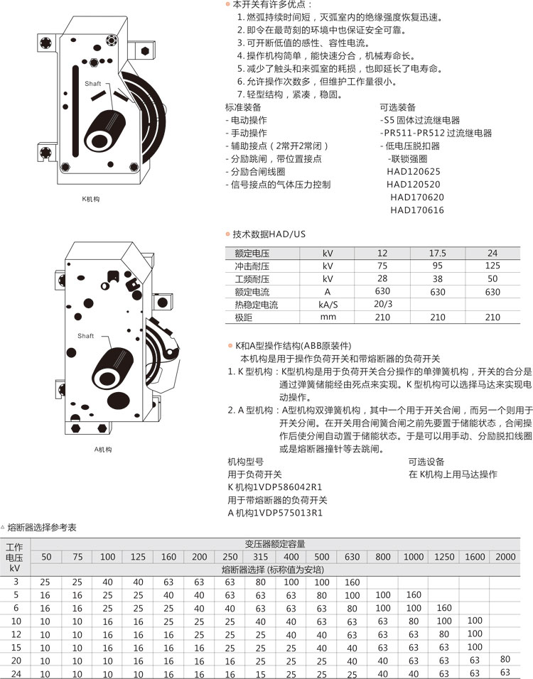 2.負荷開關是獨立單元,內部充以SF6氣體。