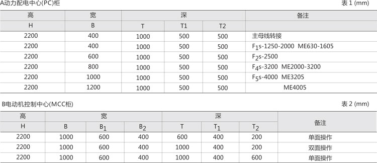 ◎ 當(dāng)PC與MCC二種裝置相鄰排列時(shí),則:1.當(dāng)MCC雙面柜(或600深度的MCC單面柜)與PC柜相鄰排列時(shí),在二柜之間必須加轉(zhuǎn)接柜(其寬度為400mm)如圖6例1所示。2.將單面操作的MCC加深到1000mm時(shí),則可以不加轉(zhuǎn)接柜,如圖6例2所示。